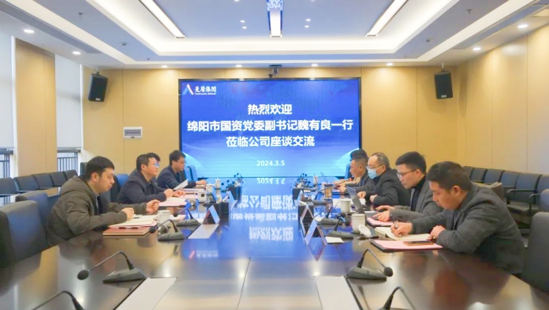 3月5日,绵阳市国资党委副书记魏有良、绵阳市国资委四级调研员杨勇一行到yl23411永利官网集团调研并座谈交流,yl23411永利官网集团党委副书记、总司理廖周荣陪同座谈。