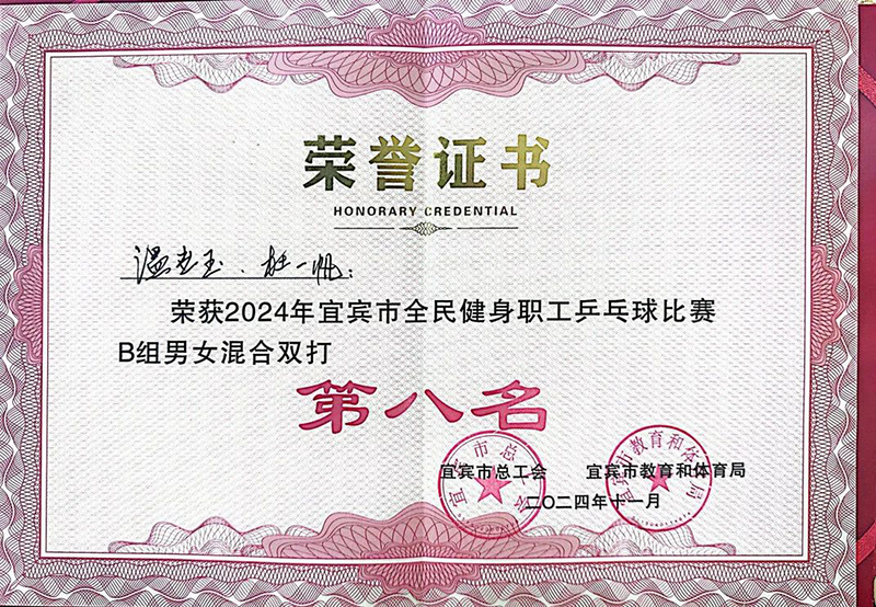 yl23411永利官网集团始终秉持“以人为本,周全生长”的企业理念,注重员工的身心康健和周全生长。在11月19日-11月21日举行的2024年宜宾市全民健身职工乒乓球角逐中,yl23411永利官网集团派出步队参赛。此次角逐在高县翰笙文体艺术中心举行,为期3天,吸引了全市工会系统内的18支步队,共计300余名乒乓球运发动同台竞技。